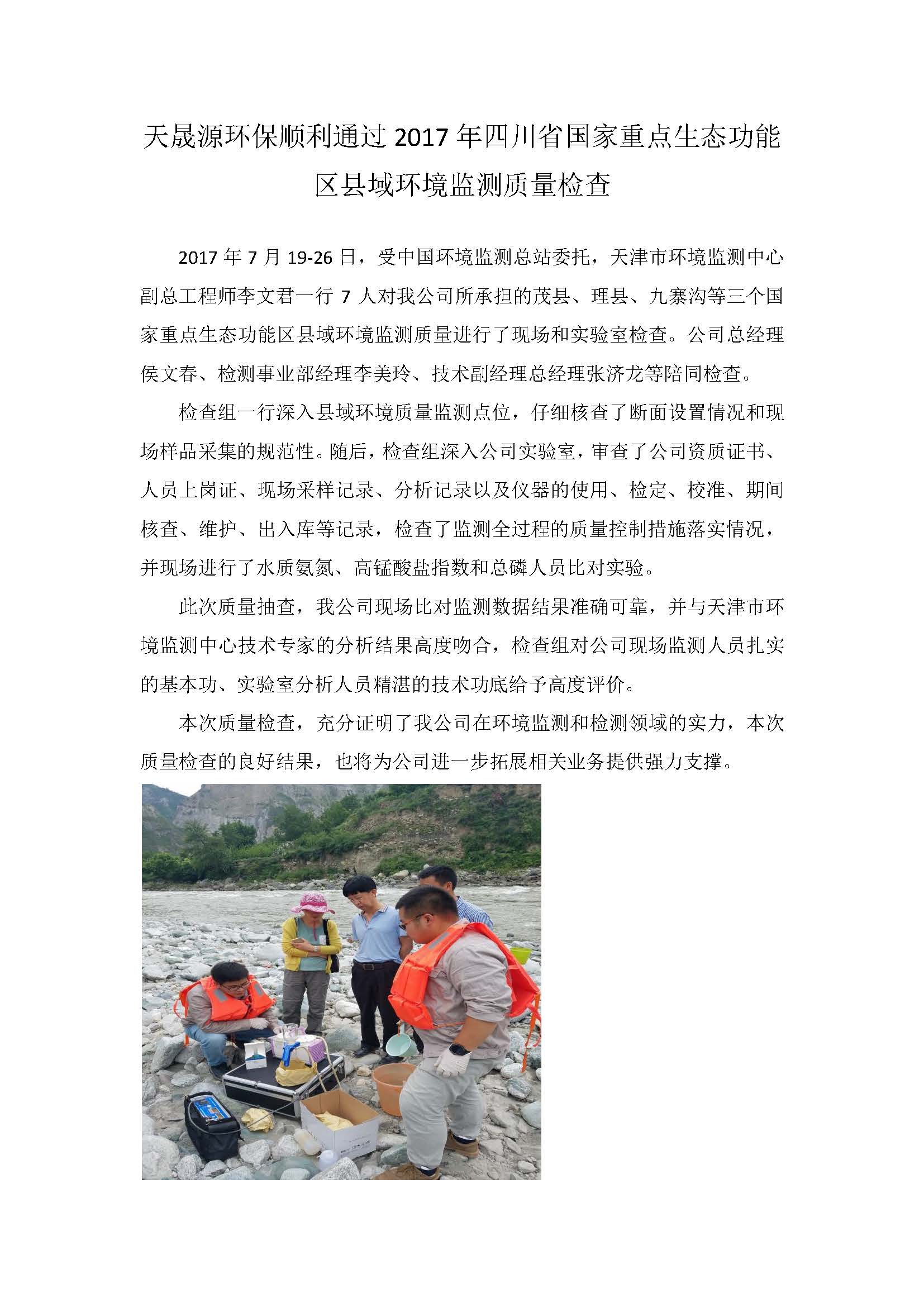 天晟源环保顺利通过2017年四川省国家重点生态功能区县域环境监测质量检查