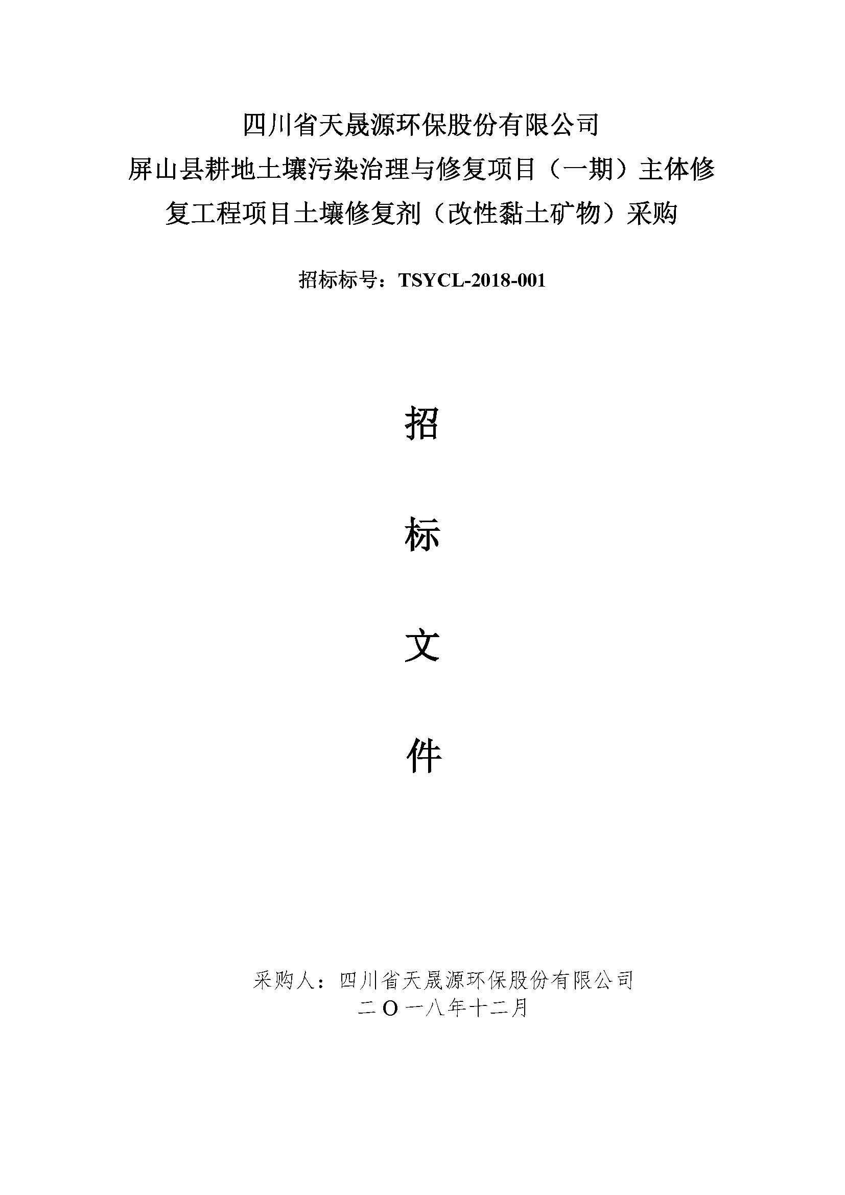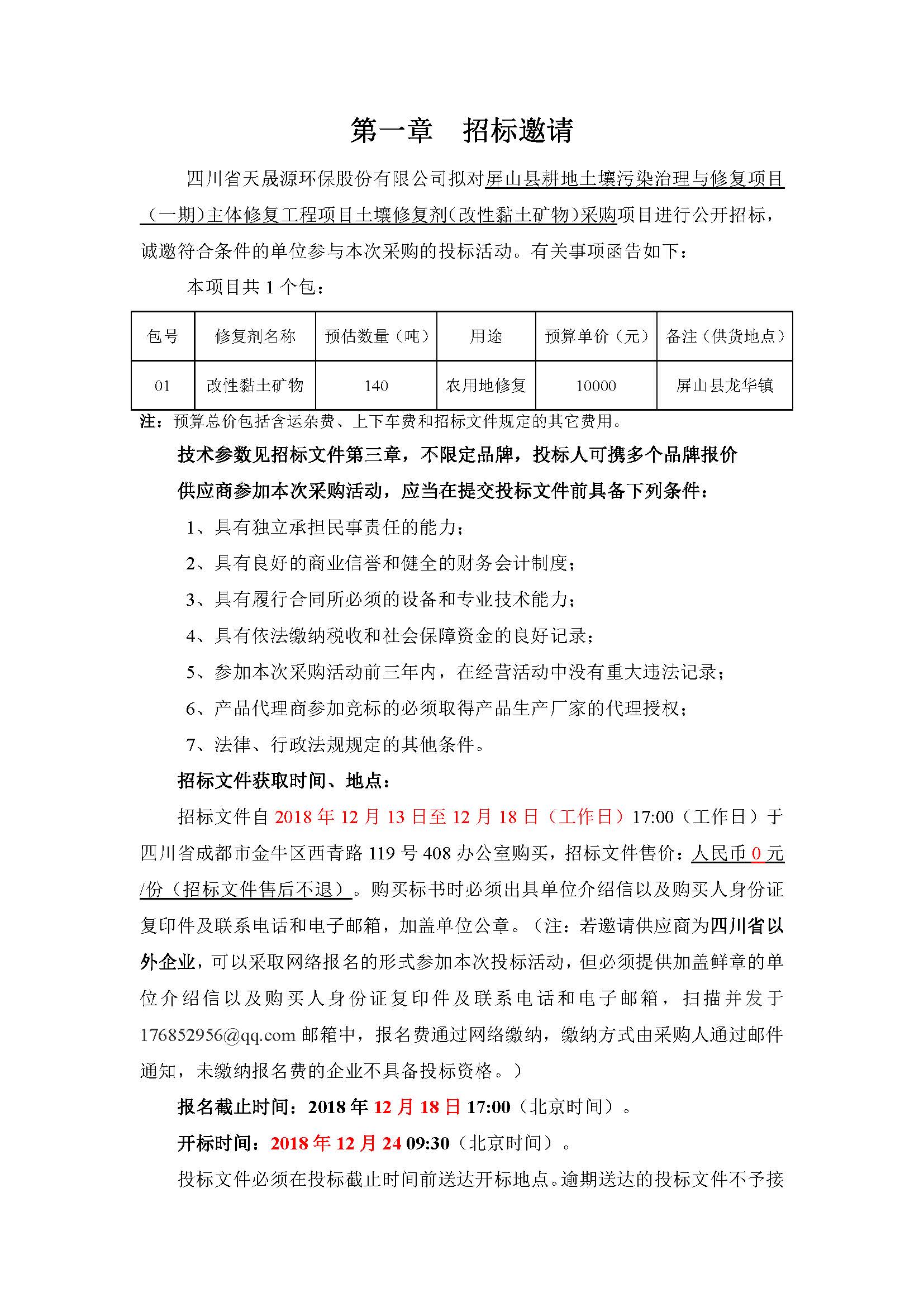 关于屏山县耕地土壤污染治理与修复项目(一期)主体修复工程材料采购-改性黏土采购项目招标