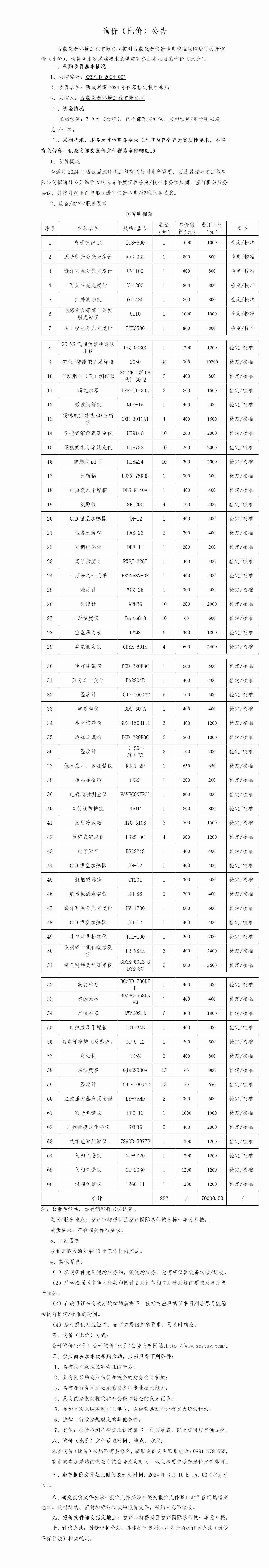 西藏晟源2024年仪器检定校准采购询价(比价)公告