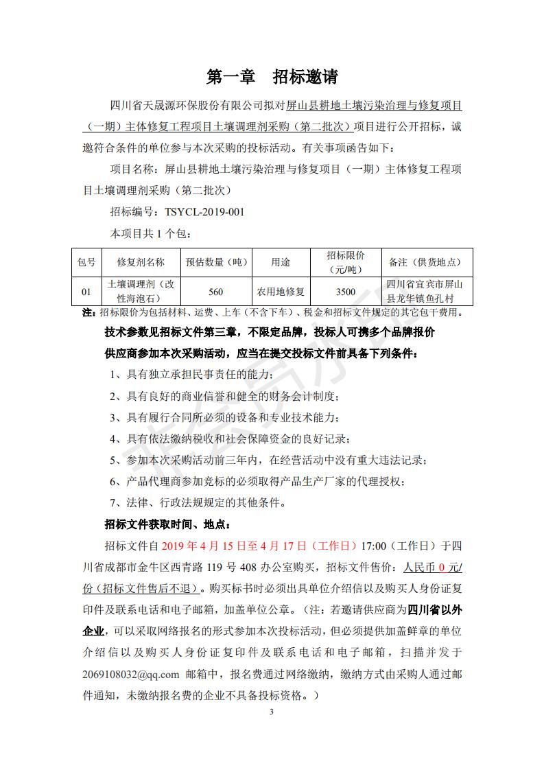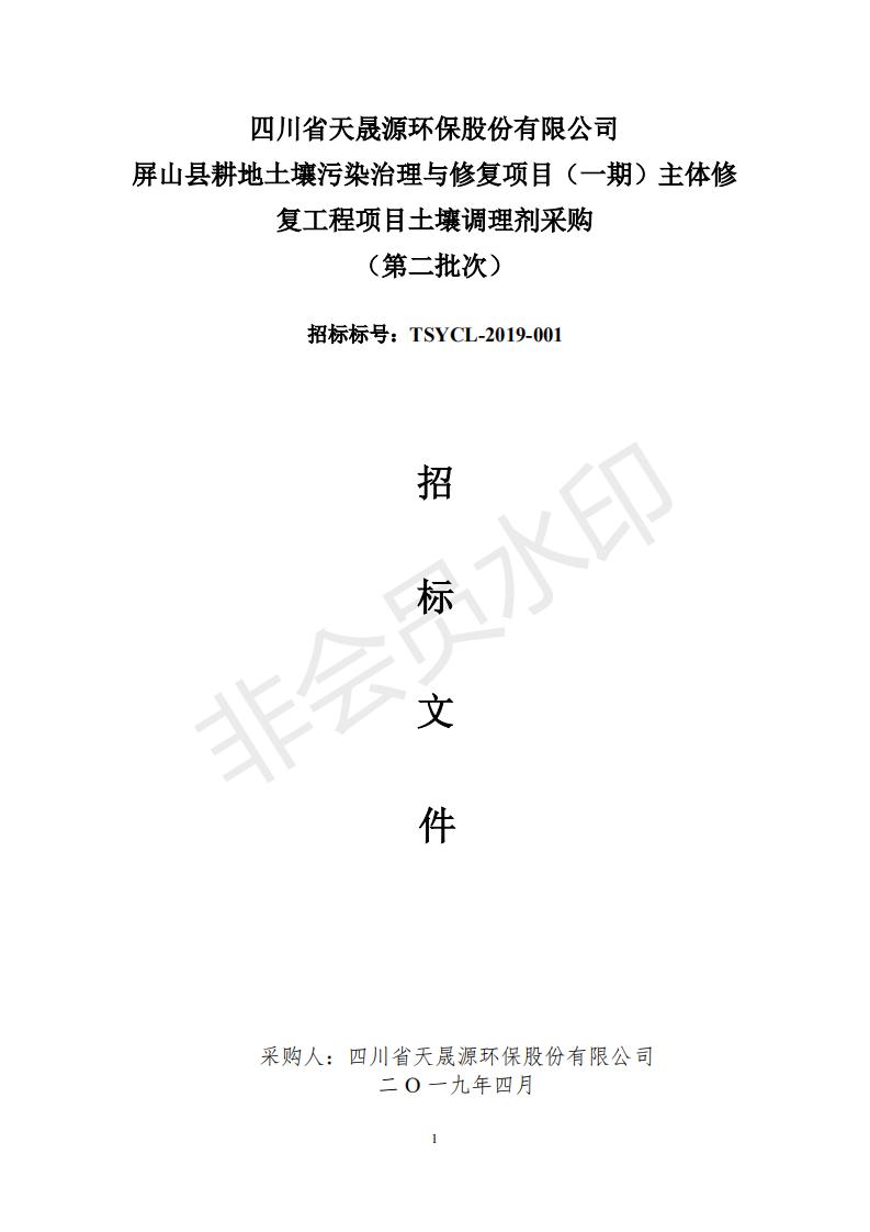 关于屏山县耕地土壤污染治理与修复项目(一期)主体修复工程项目土壤调理剂采购(第二批次)招标文件采购信息公布