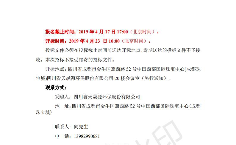西藏晟源环境工程有限公司2019年设备采购...