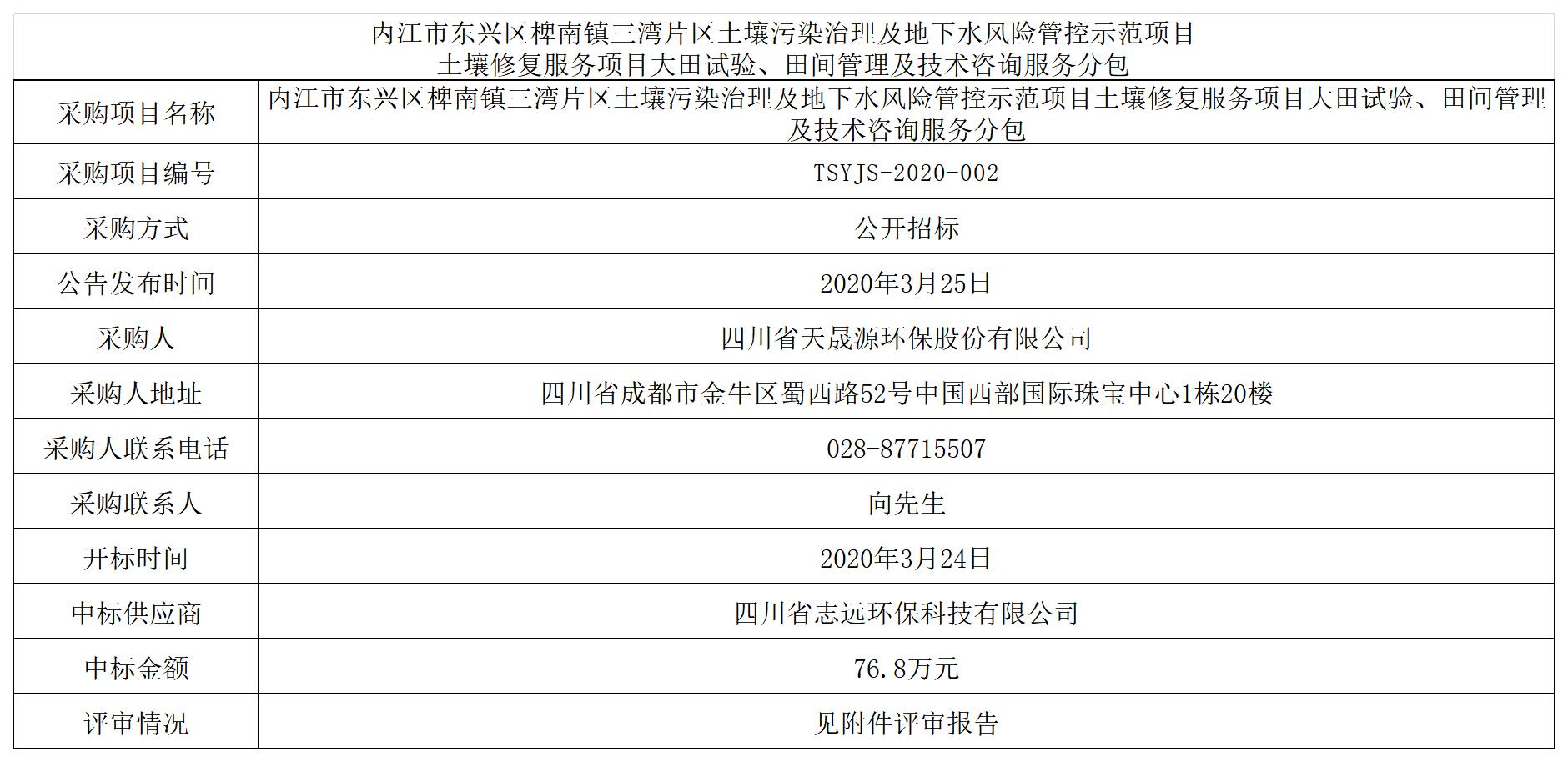 内江市东兴区椑南镇三湾片区土壤污染治理及地下水风险管控示范项目 土壤修复服务项目大田试验、田间管理及技术咨询服务分包