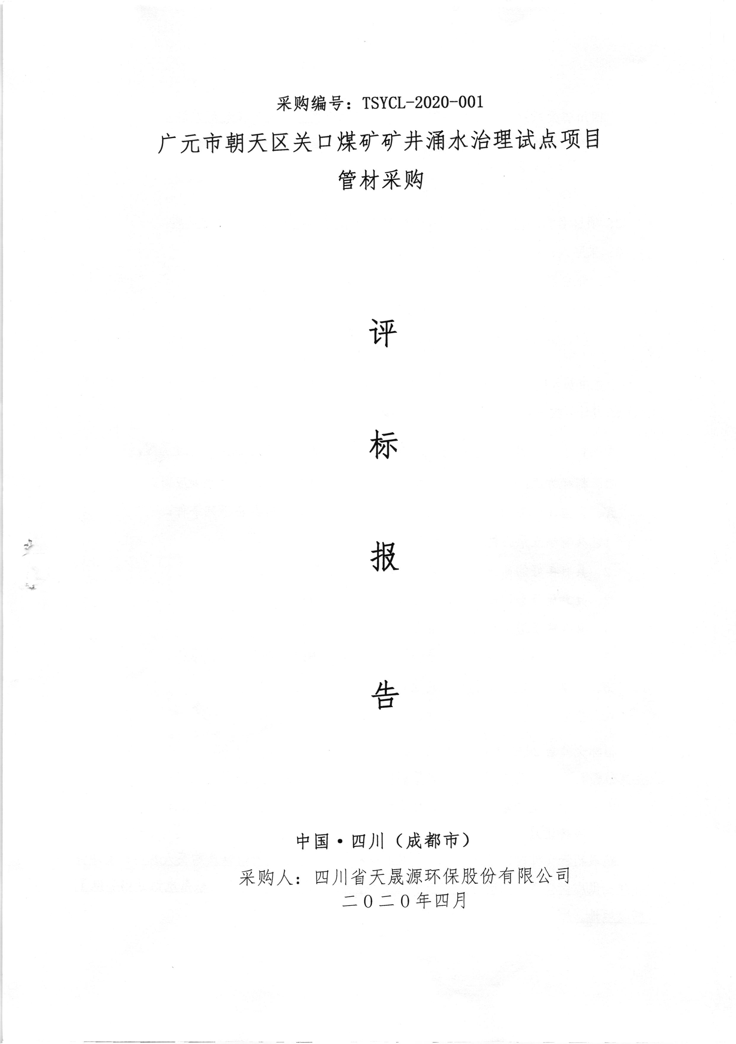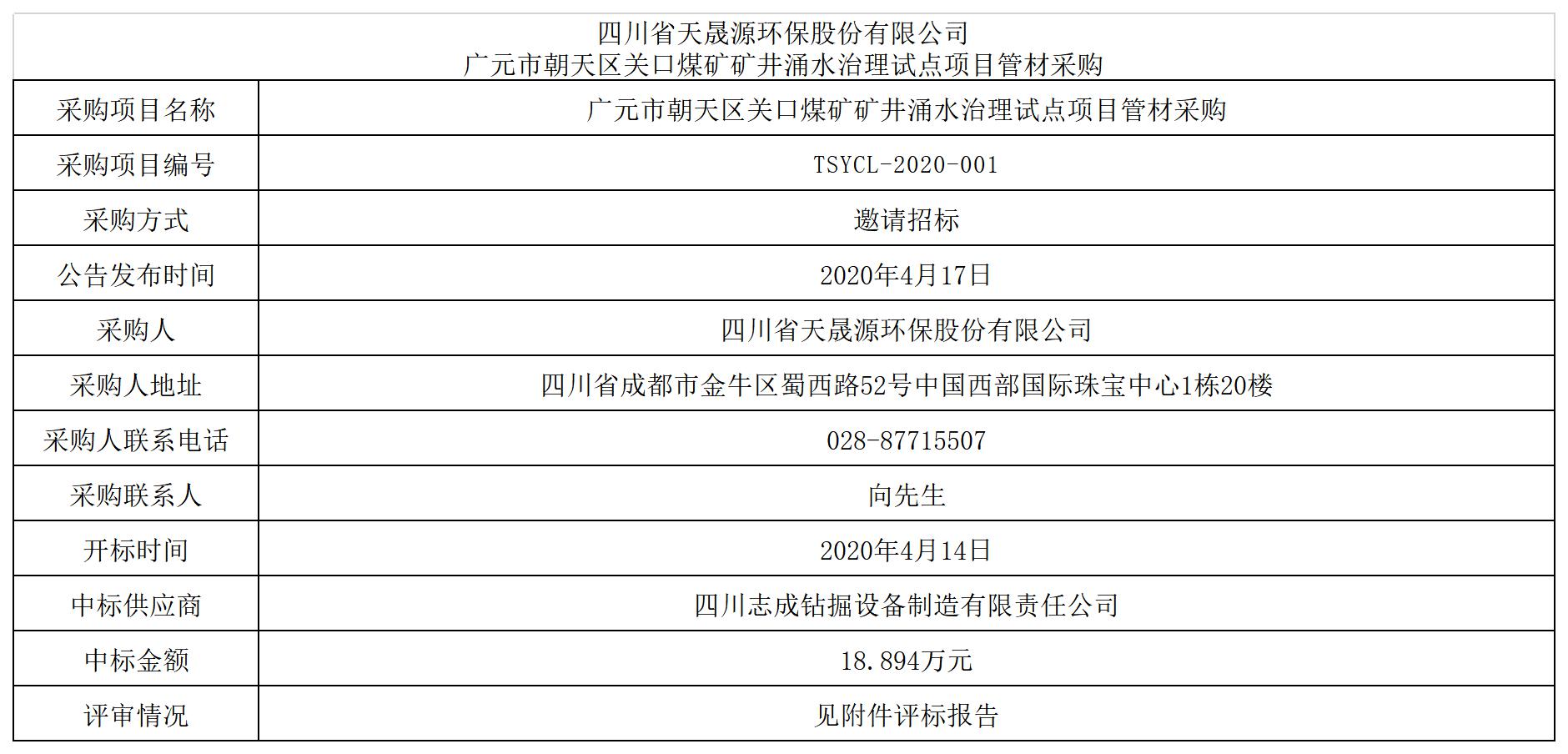 火狐(中国)官方网站-登录入口广元市朝天区关口煤矿矿井涌水治理试点项目管材采购