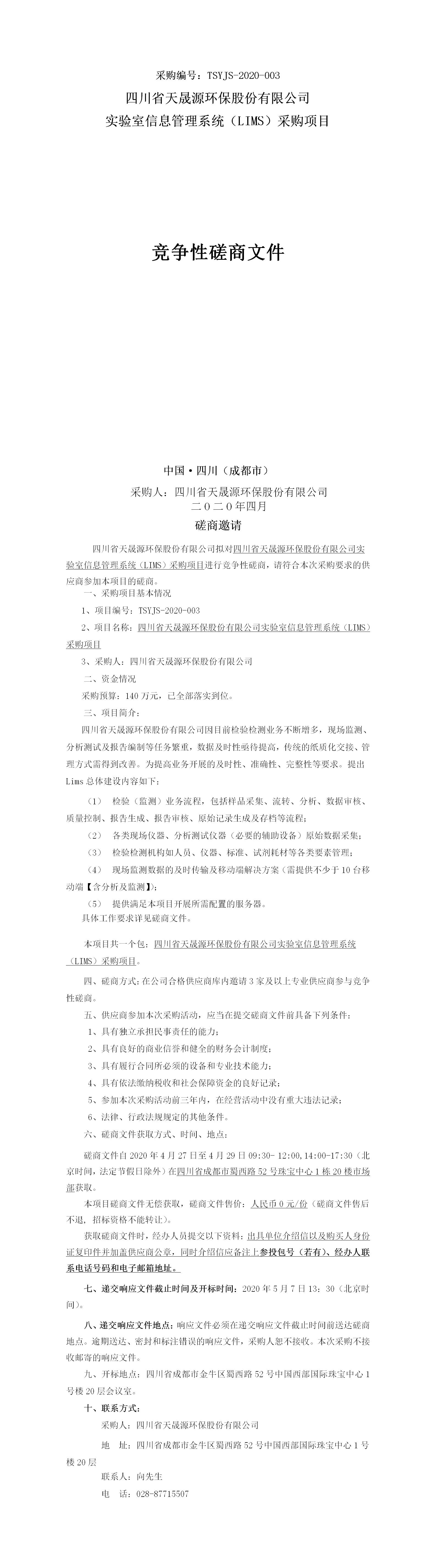 采购编号:TSYJS-2020-003 火狐(中国)官方网站-登录入口 实验室信息管理系统(LIMS)采购项目