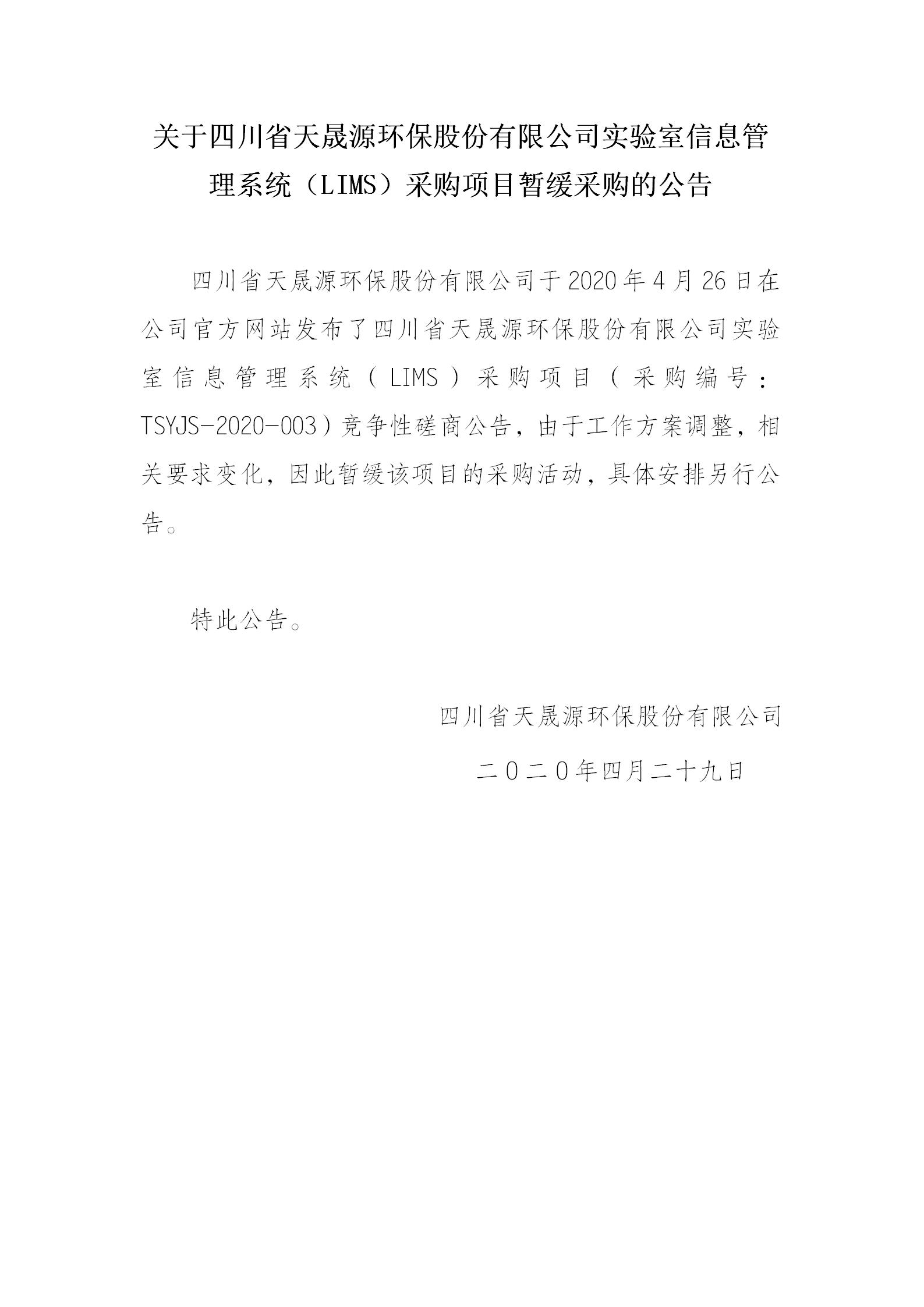 关于火狐(中国)官方网站-登录入口实验室信息管理系统(LIMS)采购项目暂缓采购的公告