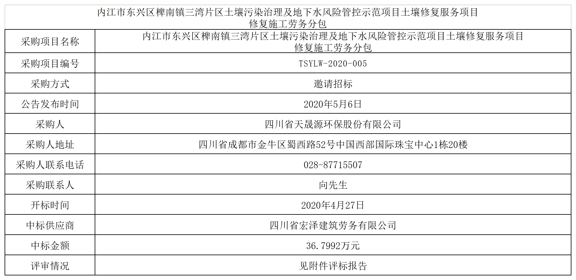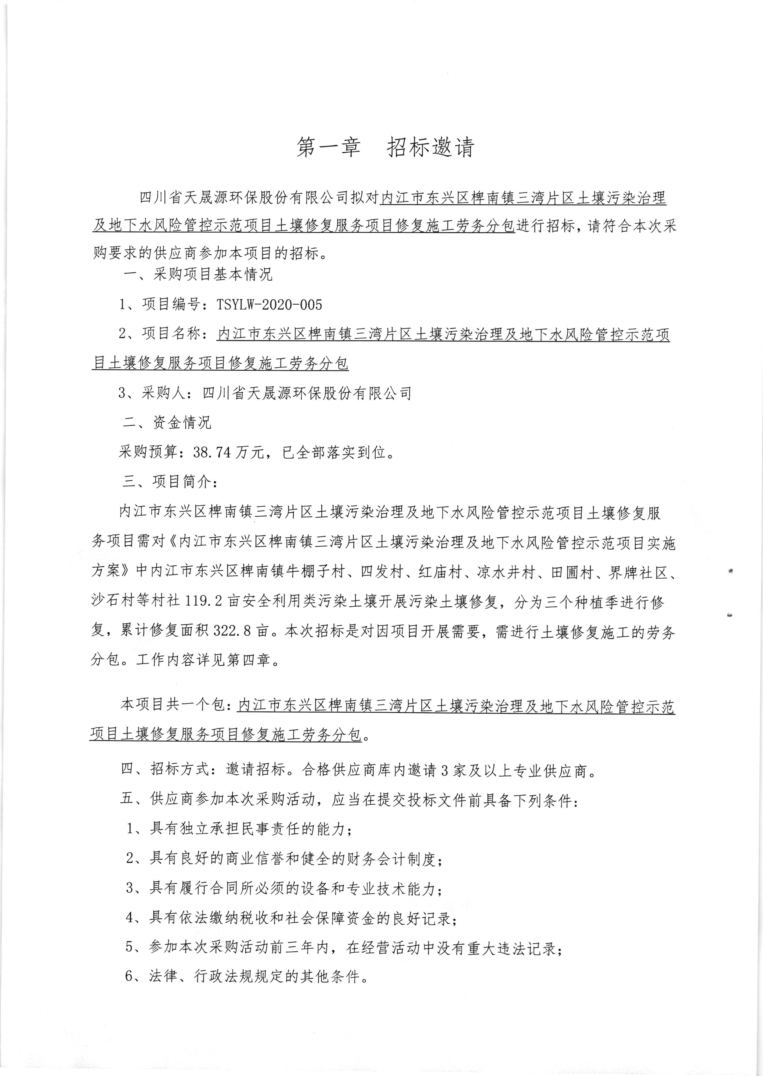 内江市东兴区椑南镇三湾片区土壤污染治理及地下水风险管控示范项目土壤修复服务项目 修复施工劳务分包