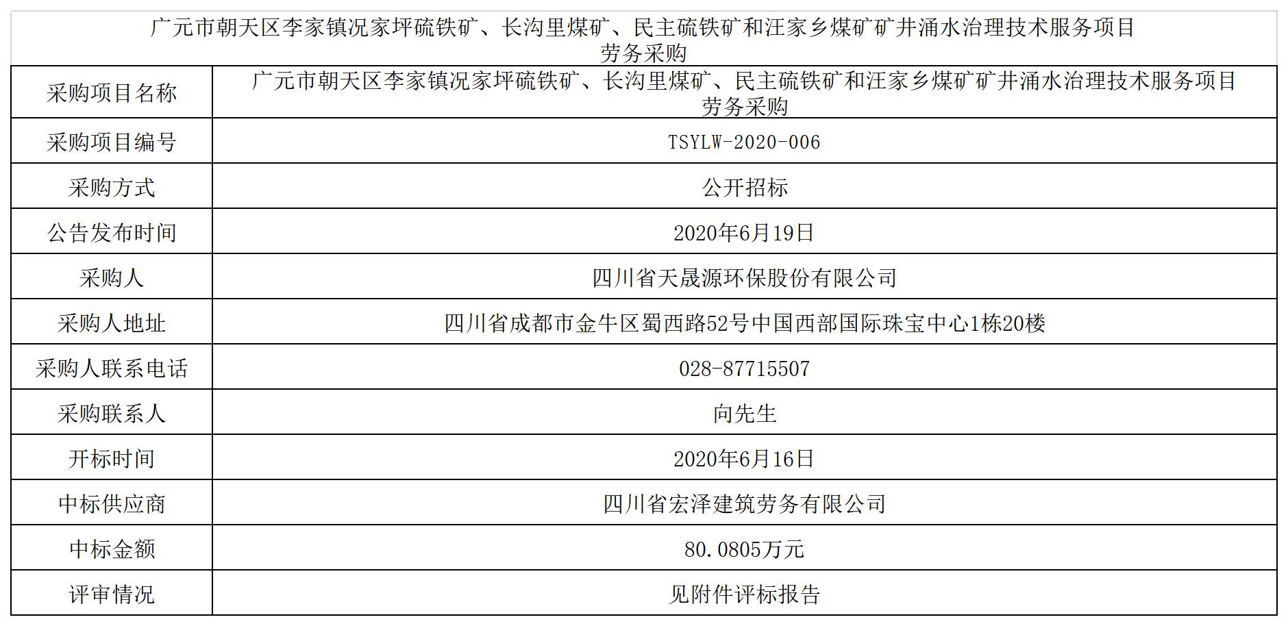 广元市朝天区李家镇况家坪硫铁矿、长沟里煤矿、民主硫铁矿和汪家乡煤矿矿井涌水治理技术服务项目 劳务采购