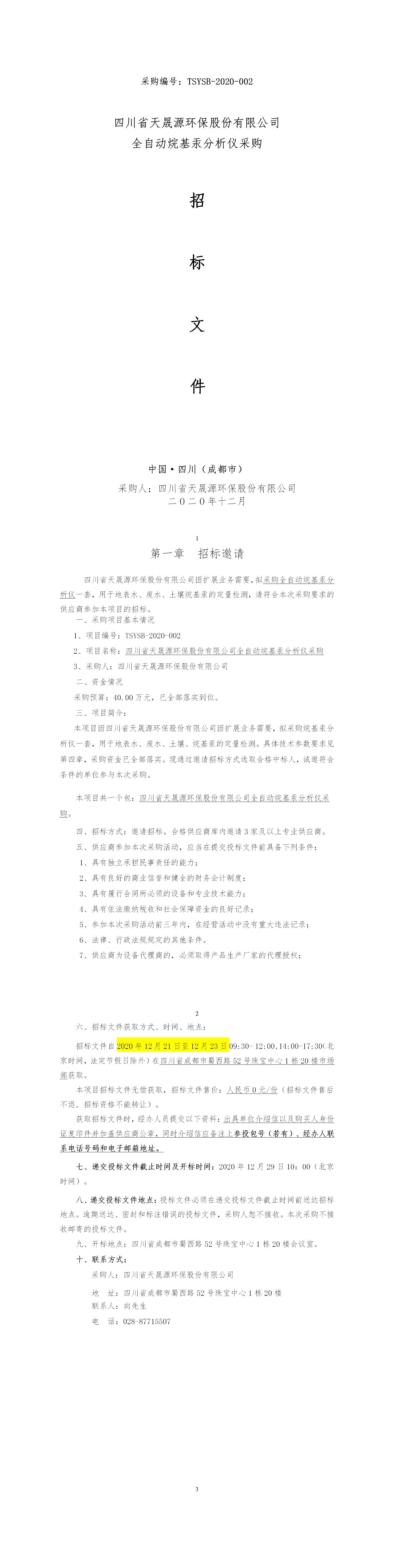 采购编号:TSYSB-2020-002 火狐(中国)官方网站-登录入口 全自动烷基汞分析仪采购