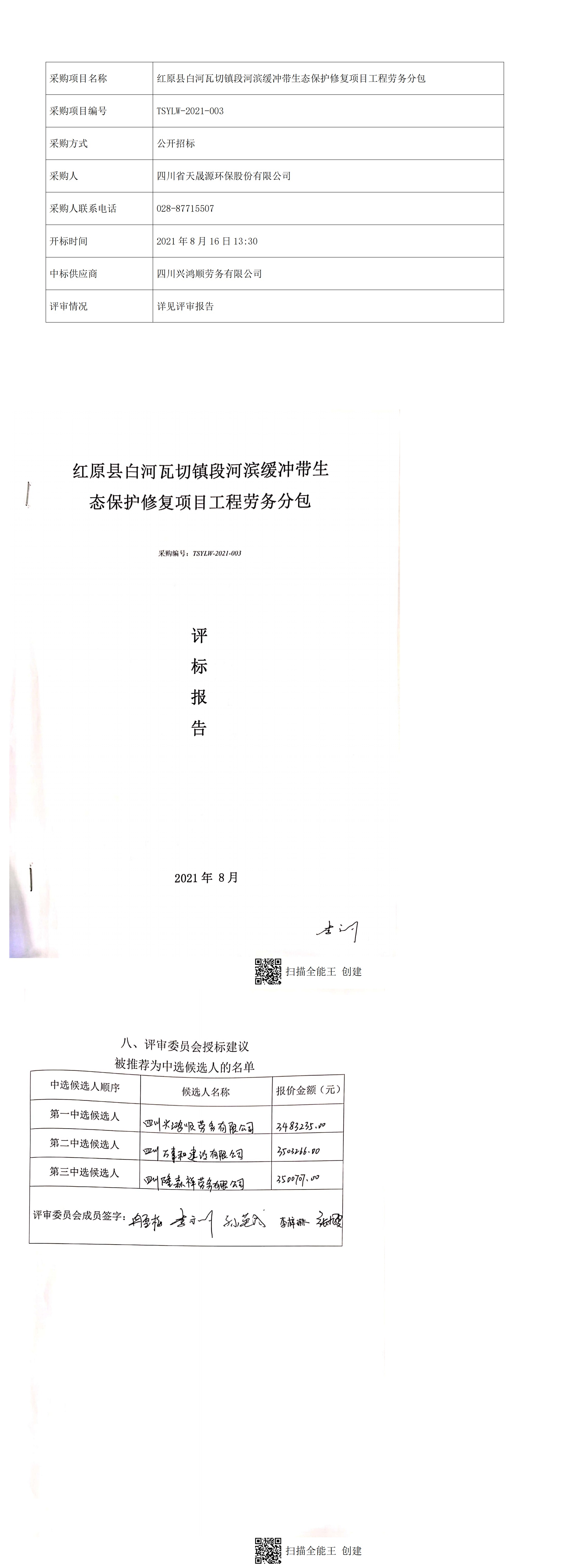 红原县白河瓦切镇段河滨缓冲带生态保护修复项目工程劳务分包中标公告