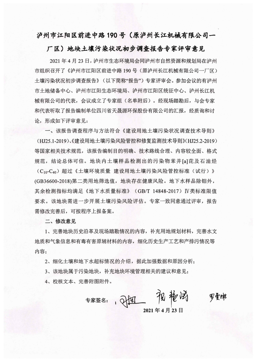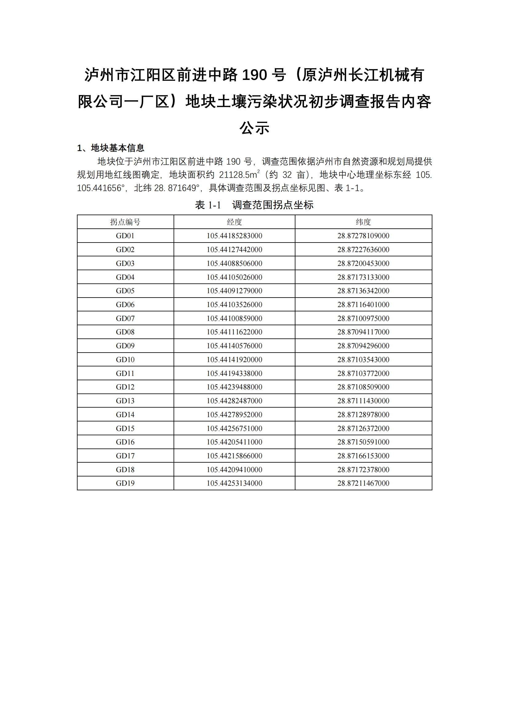 泸州市江阳区前进中路190号泸州市江阳区前进中路190号(原泸州长江机械有限公司一厂区)地块土壤污染状况初步调查报告内容公示