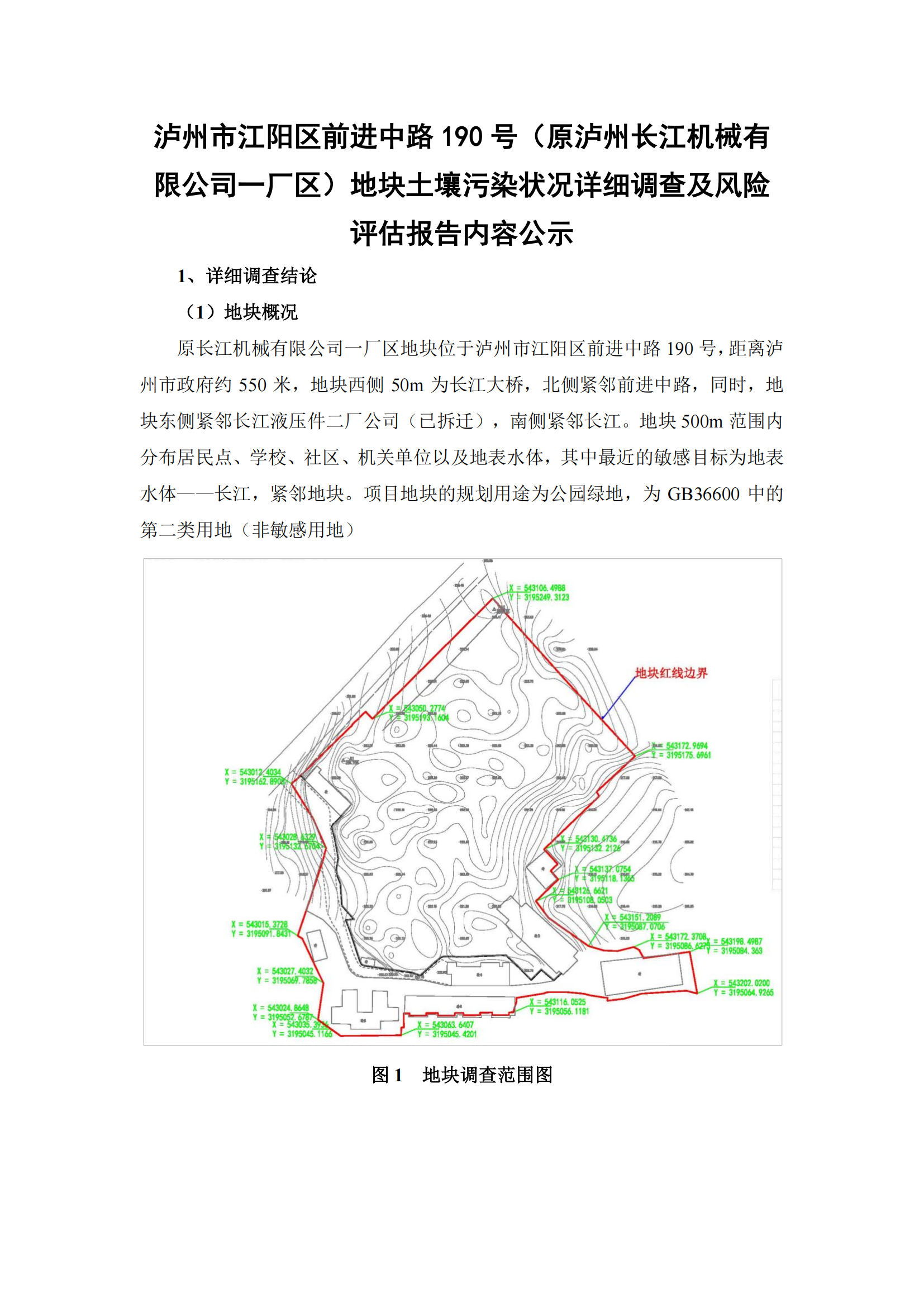 泸州市江阳区前进中路190号(原泸州长江机械有限公司一厂区)地块土壤污染状况详细调查及风险评估报告内容公示