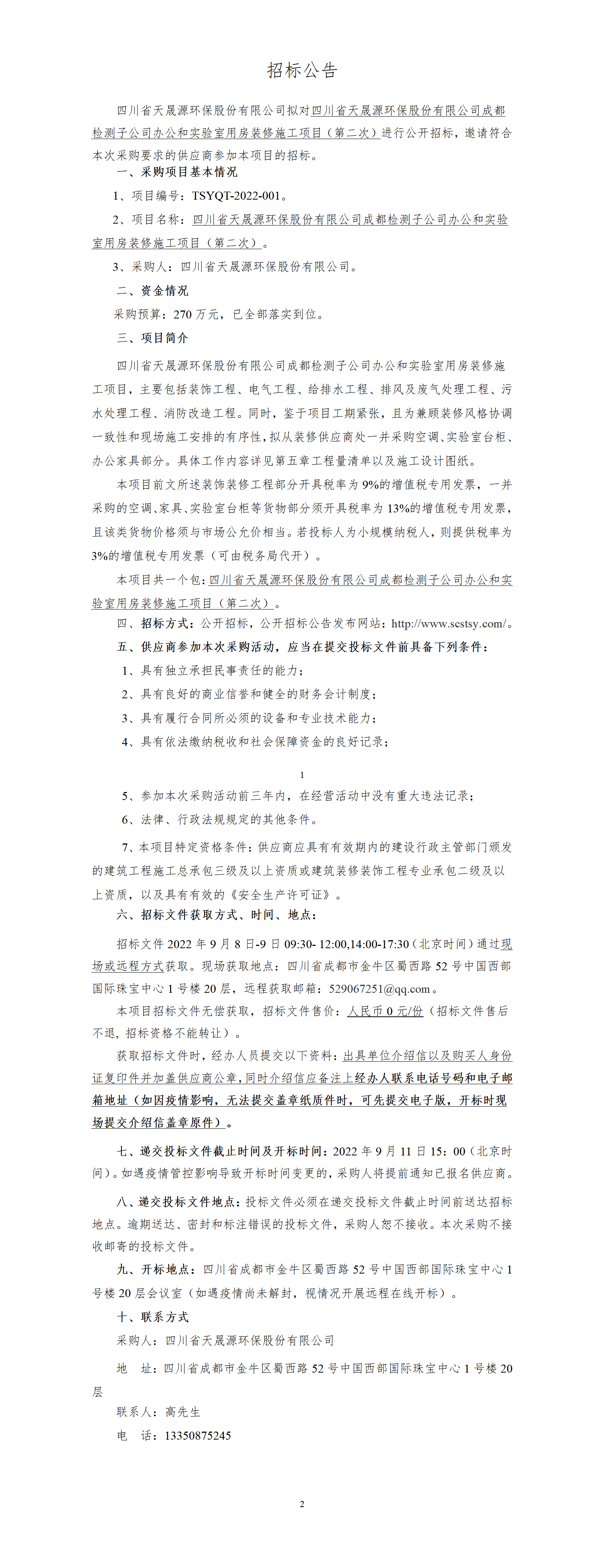 火狐(中国)官方网站-登录入口成都检测子公司办公和实验室用房装修施工项目(第二次)招标公告