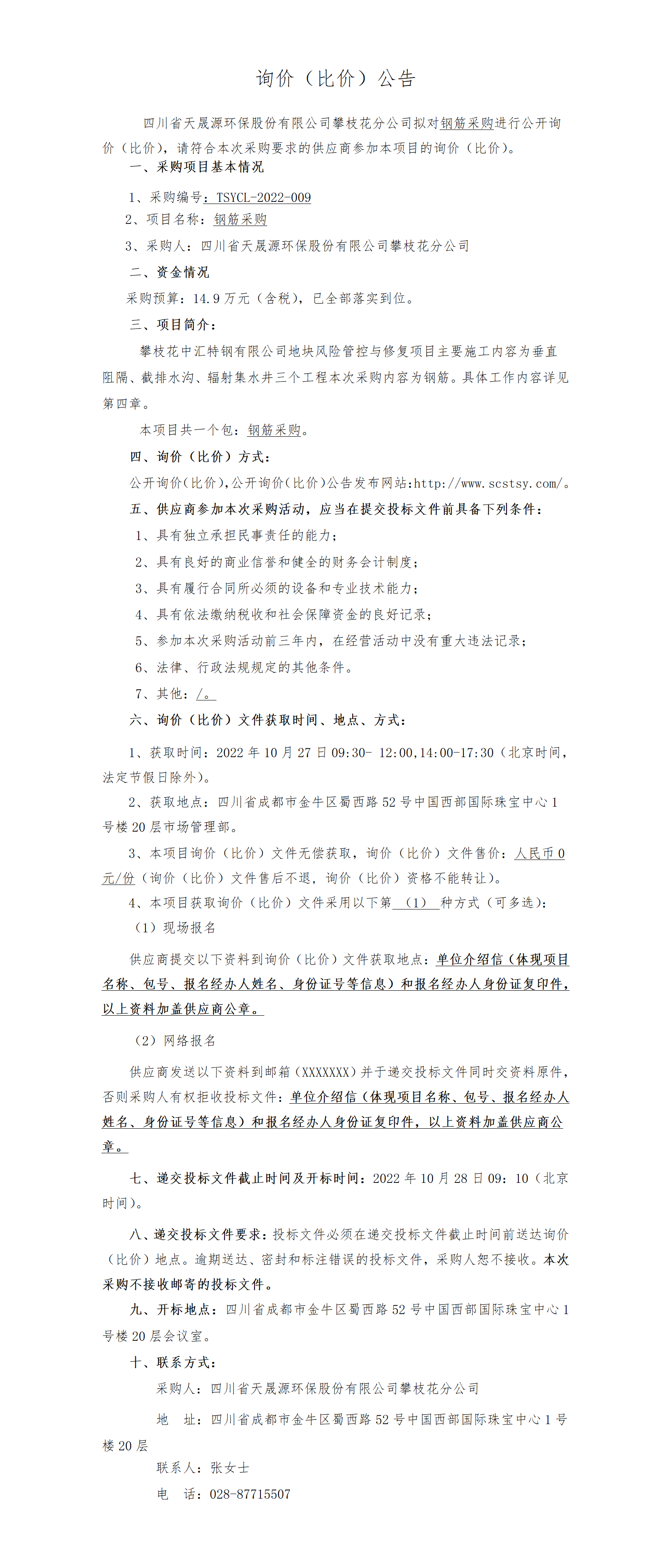 TSYCL-2022-009询价(比价)公告-钢筋采购