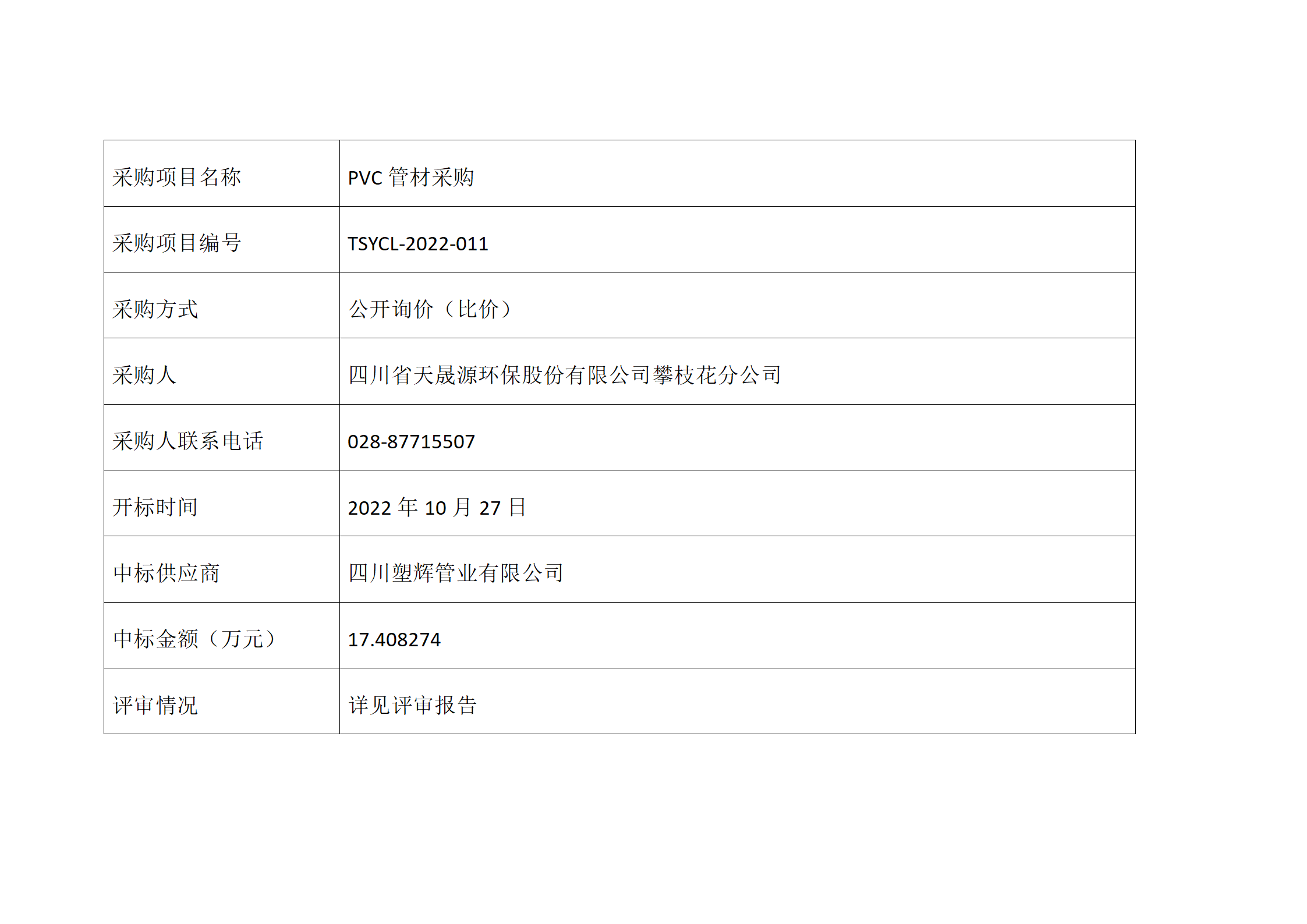 中选公告-pvc管材采购tsycl-2022-011