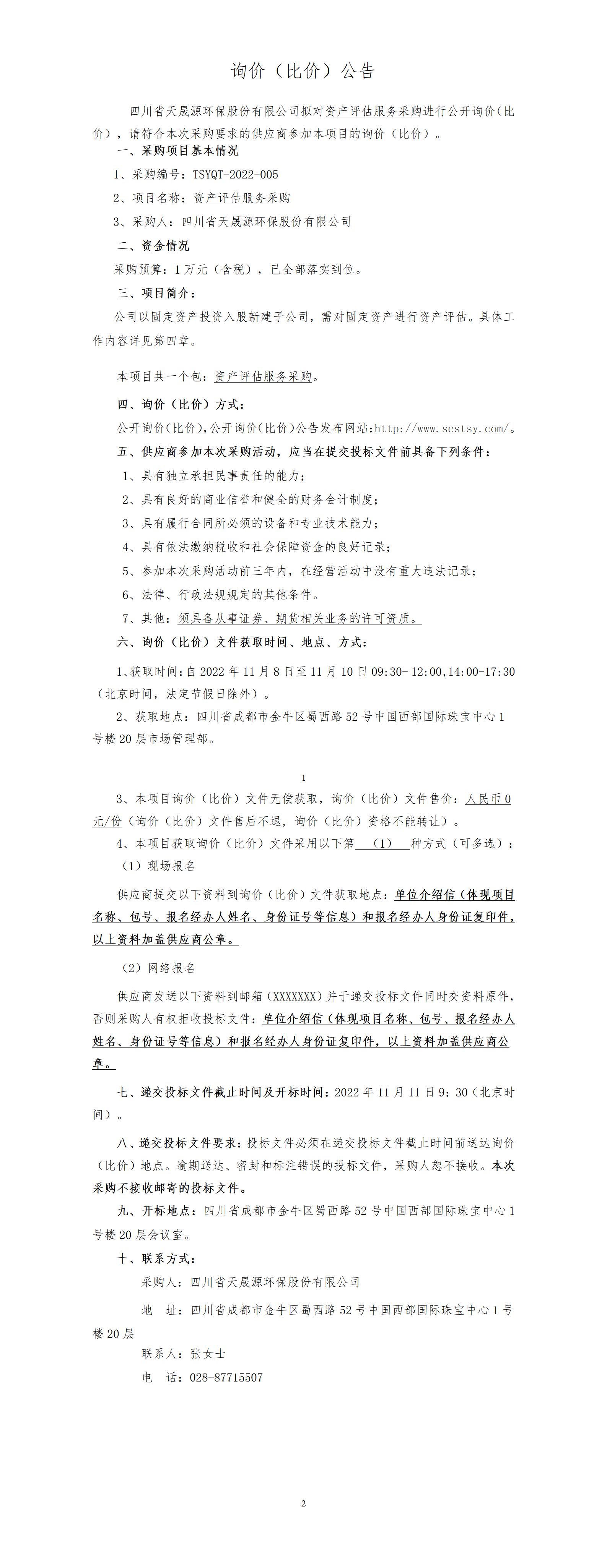 TSYQT-2022-005 资产评估服务采购公开询价比价公告