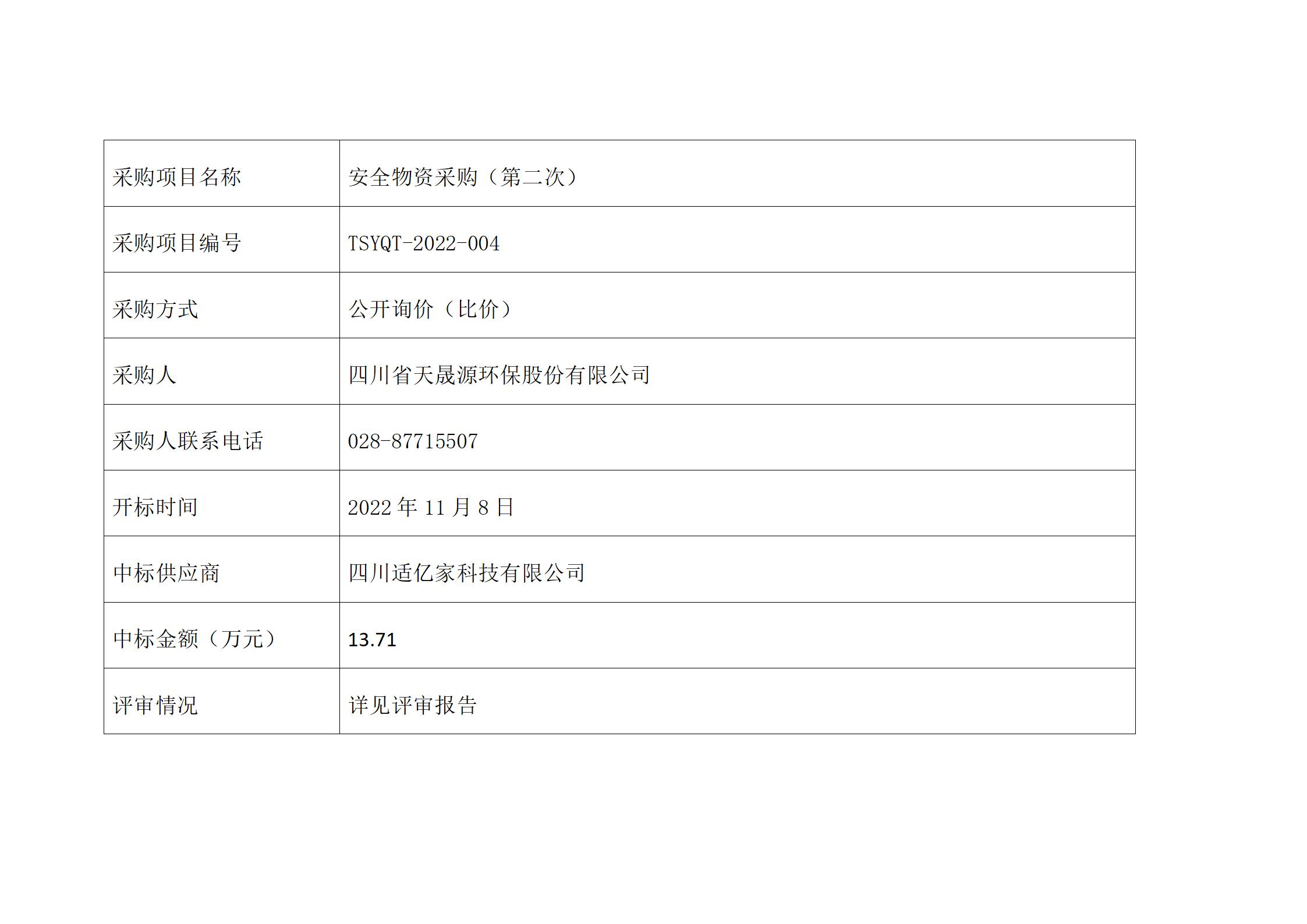 中选公告-安全物资采购(第二次)