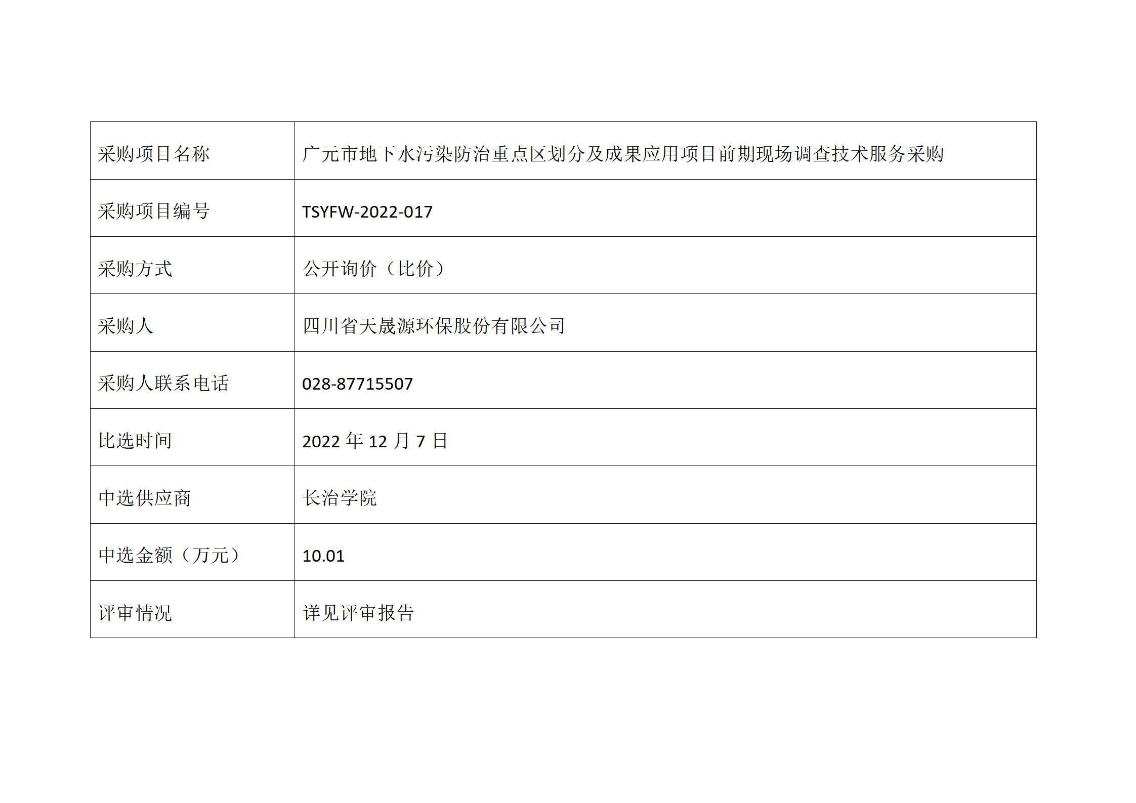 中选公告-广元市地下水污染防治重点区划分及成果应用项目前期现场调查技术服务采购