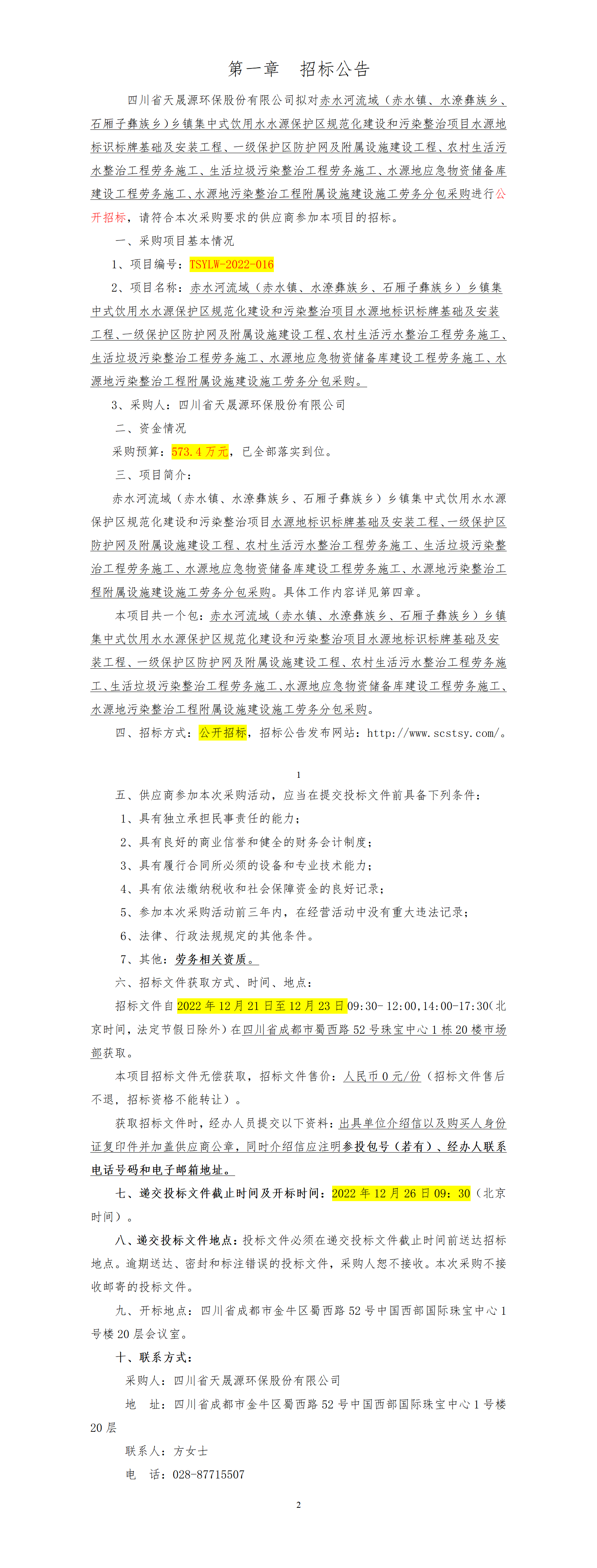 TSYLW-2022-016赤水河流域(赤水镇、水潦彝族乡、石厢子彝族乡)乡镇集中式饮用水水源保护区规范化建设和污染整治项目施工劳务分包采购_01