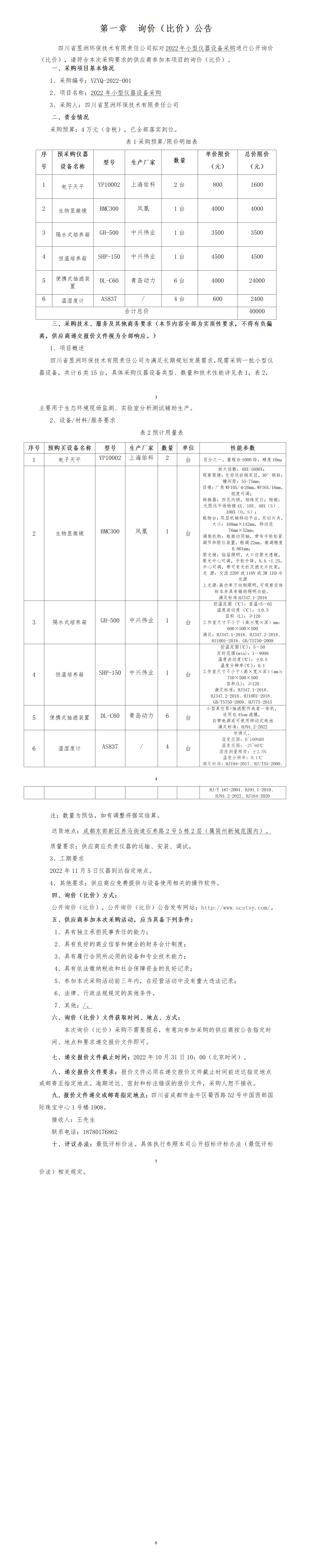 2022年小型设备采购公开询价文件-昱洲子公司