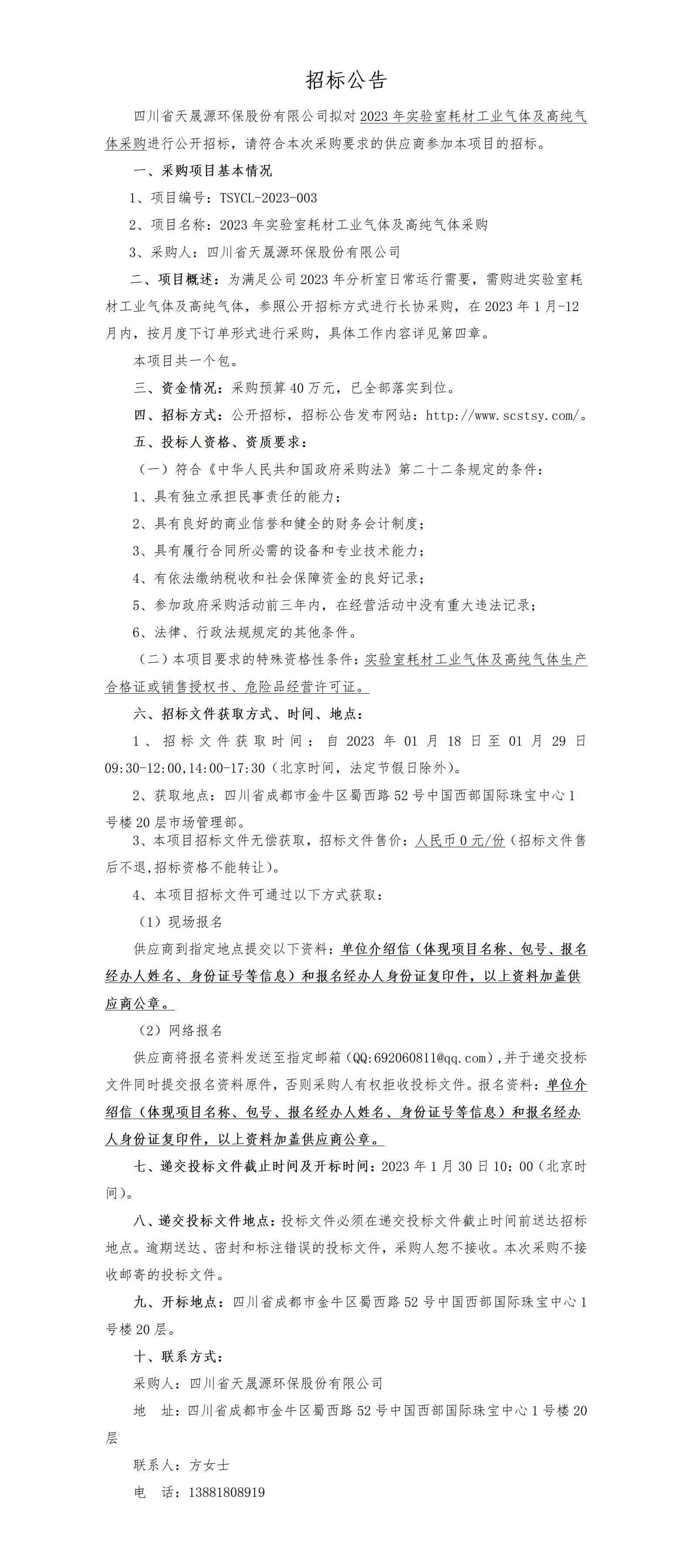 2023年实验室耗材工业气体及高纯气体采购-公开招标公告