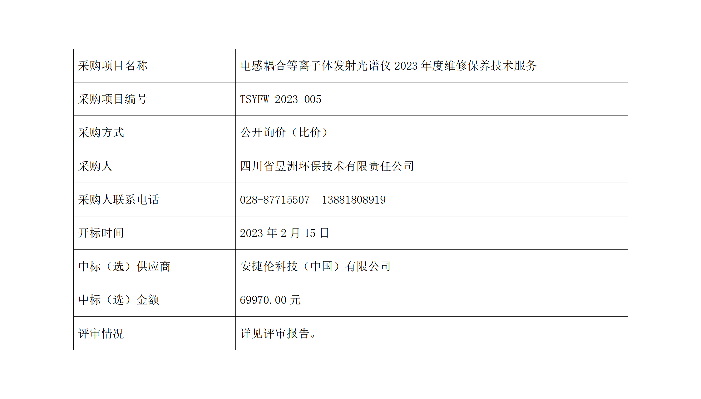 中选公告-电感耦合等离子体发射光谱仪2023年度维修保养技术服务