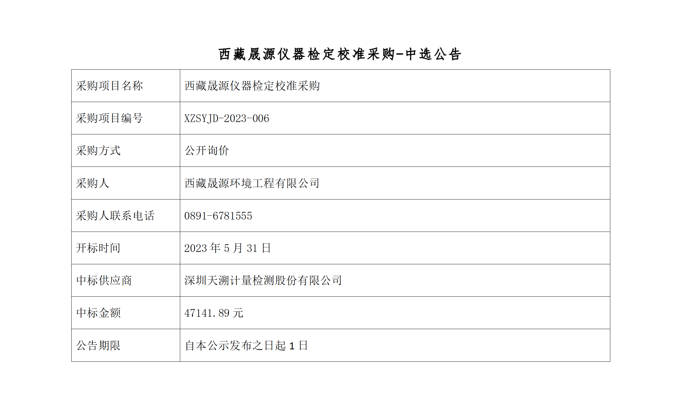 西藏晟源仪器检定校准中选公告