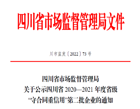 (四川省2020-2021年度“守合同重信用企业”公示名单)