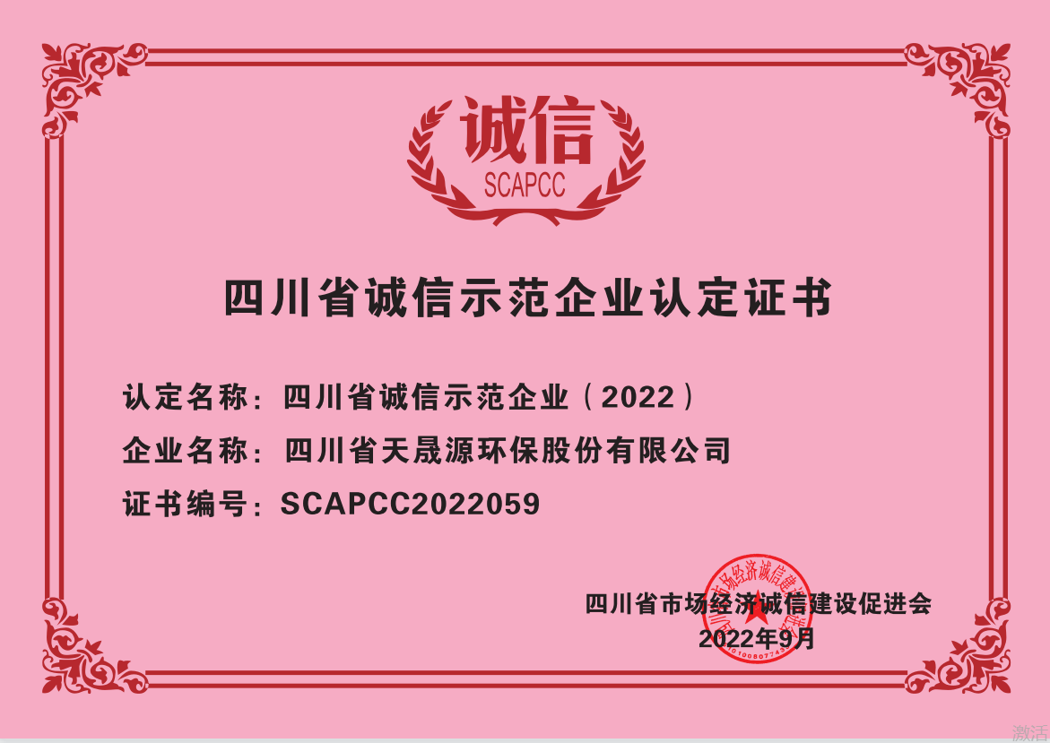 重诺守信,以诚兴商——天晟源环保荣获“守合同重信用企业”“四川省诚信示范企业”两项称号