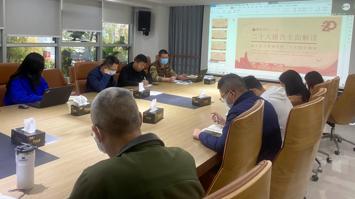 在传达了上级党委文件精神后,廖禄云书记组织大家学习解读了“二十大对党章做出的修正”,并与参会党员共同深入学习解读党的二十大报告。会议对关于认真学习党的二十大精神提出建议和期望,强调要提高政治站位,学习宣传贯彻党的二十大精神的重要意义,把学习好、宣传好、贯彻好党的二十大精神作为当前和今后一段时期全公司的首要任务。全体与会人员认真学习、踊跃发言,大家一致表示,要在公司高质量发展中发挥好先锋模范作用,在新时代、新征程中勇担当、敢争先、闯新路、创新业。