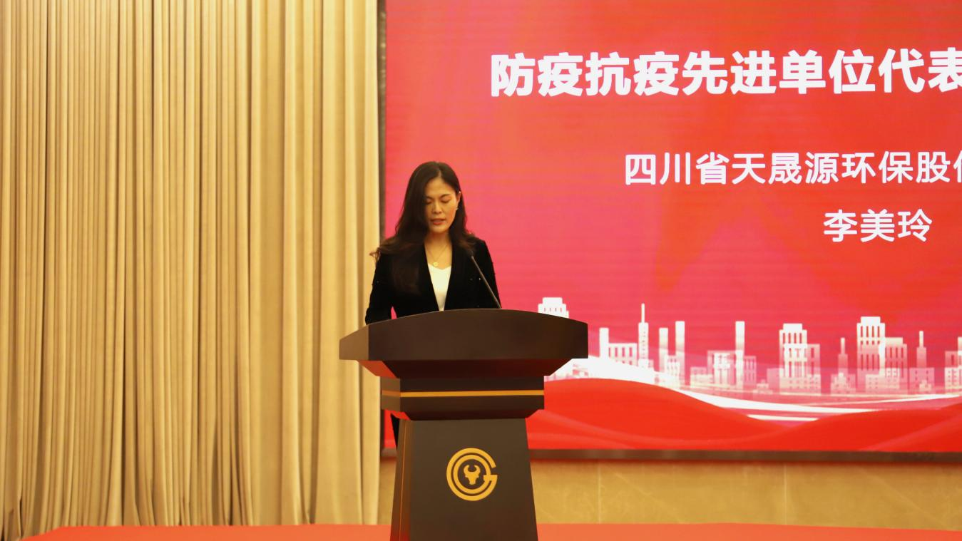 会上,天晟源环保被授予“防疫抗疫先进单位”奖牌,公司副总经理李美玲代表公司分享防疫抗疫工作经验。李美玲表示,天晟源环保是一家勇于担当社会责任的国有环保企业,在疫情爆发初期,公司了解到甘孜州康定市因疫情需要开展应急监测工作后,迅速组成应急监测小组,带着公司调动各方力量筹集到的医用标准口罩、防护服、酒精等防护物资逆向而行,赶赴现场支援,对康定市县城饮用水、污水处理厂和定点收治医院共计13个点位开展应急监测工作,累计出具应急监测报告50余份,为当地防疫工作提供有力支撑。2020年至今,公司承担了眉山新区5个隔离场所,东部新区6个隔离场所,天府新区10个定点隔离场所、5个风控小区的隔离监测工作,在保障人员安全前提下,共计完成1200余次现场监测任务,并于2020年10月收到了来自天府新区成都管委会生态环境和城市管理局对项目组的感谢信。
