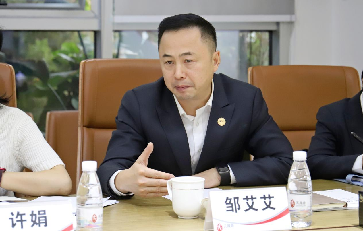 四川发展安全生产管理部高级经理张舒,四川省生态环保产业集团有限责任公司安全生产管理部副总经理彭娇娇,天晟源环保董事长李大有、总经理张恒及高管团队参加座谈。