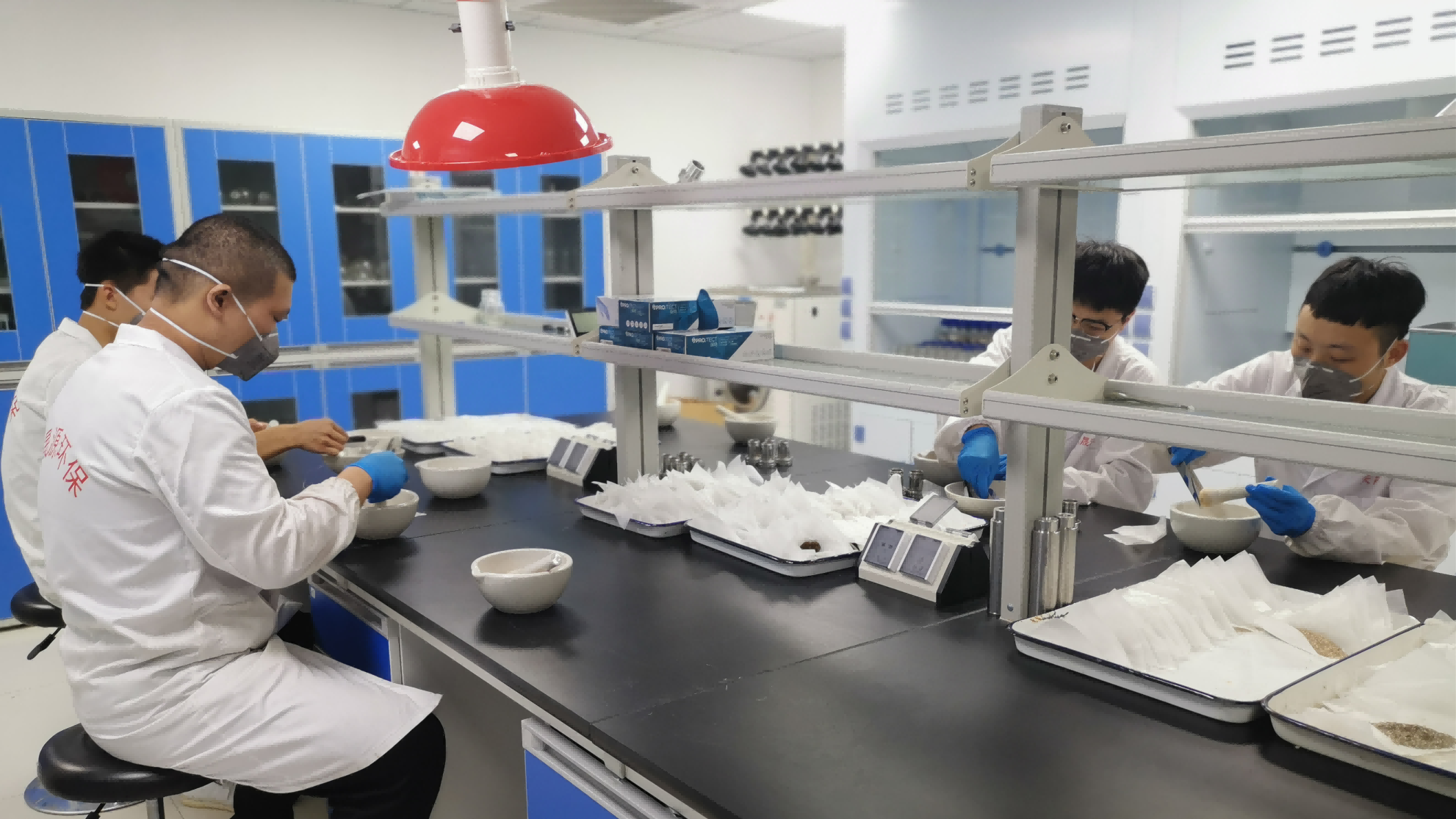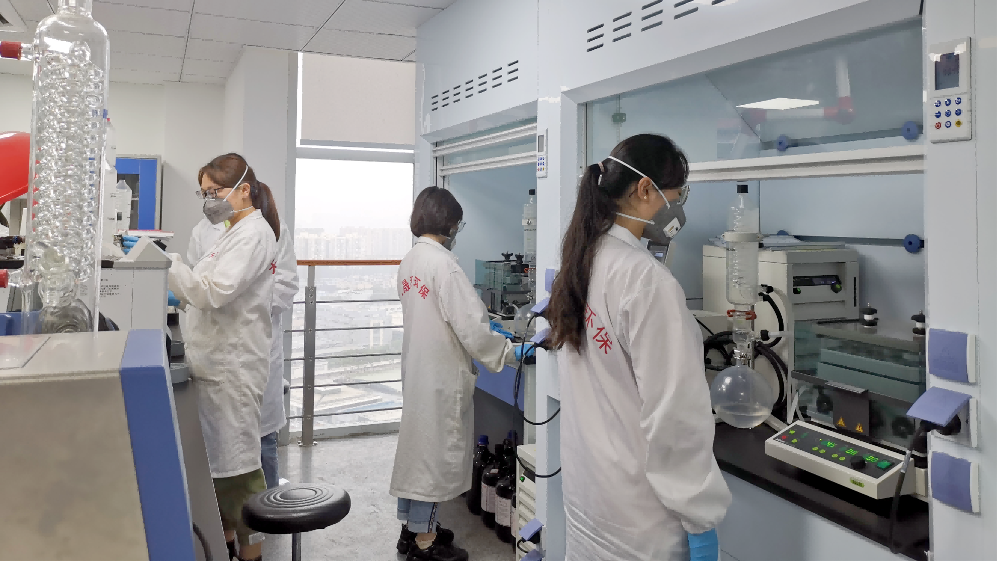 (分析人员操作平行蒸发和旋转蒸发仪)
