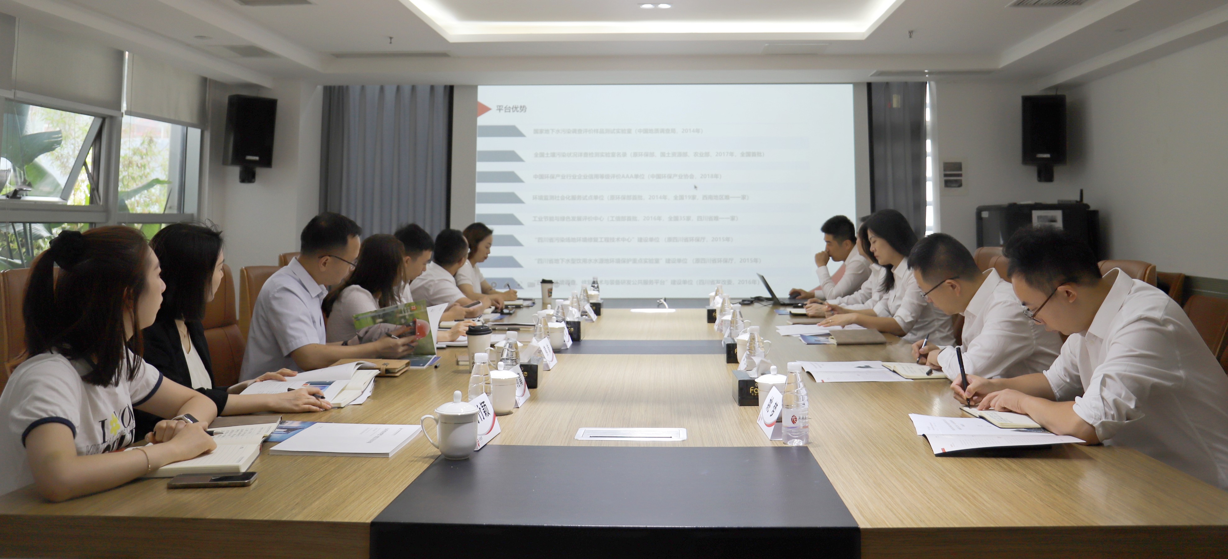 参加调研访谈的还有四川省生态环保集团董事会办公室主任张力,党委组织部、人力资源部部长熊岗,党群工作部副部长陈元隆,经营管理部副总经理徐琬甯,党群工作部任小英,董事会办公室周竹颖;天晟源环保副总经理李美玲、财务总监姚梦、总经理助理刘勇、综合管理部经理李云峰及董事会办公室工作人员。