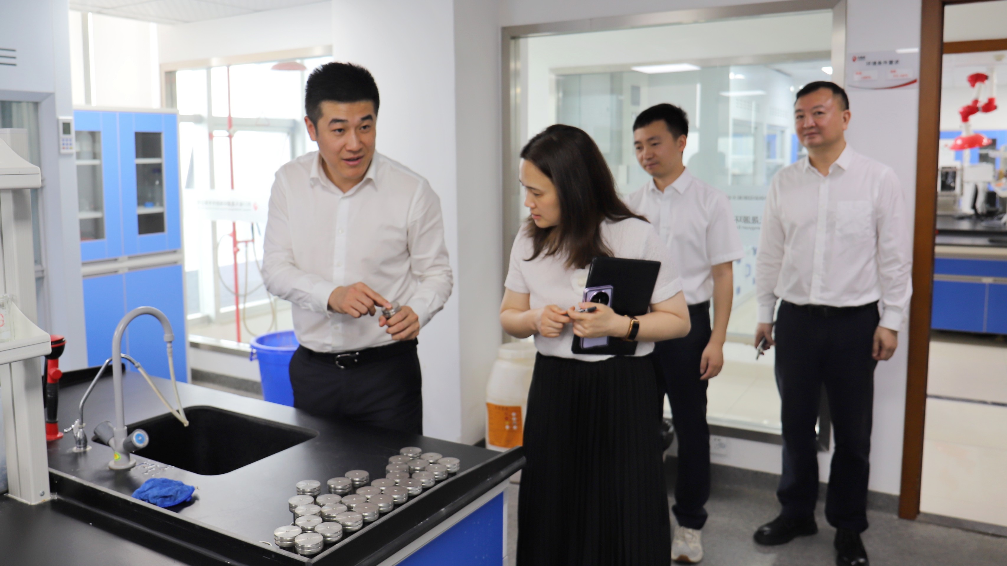张文委员参观了天晟源环保实验室并对实验室运行情况给予了高度肯定。在调研座谈会上,张文委员提出了三点要求:一是要“配齐、配足、配强”董事会办公室工作人员,打造一支专业的董事会办公室人才队伍;二是要对董事会工作制度、流程进行“再优化、再规范”,夯实董事会各项工作开展的基础;三是积极参加集团内部的交流、培训,分享工作经验、提升理论和实操水平。